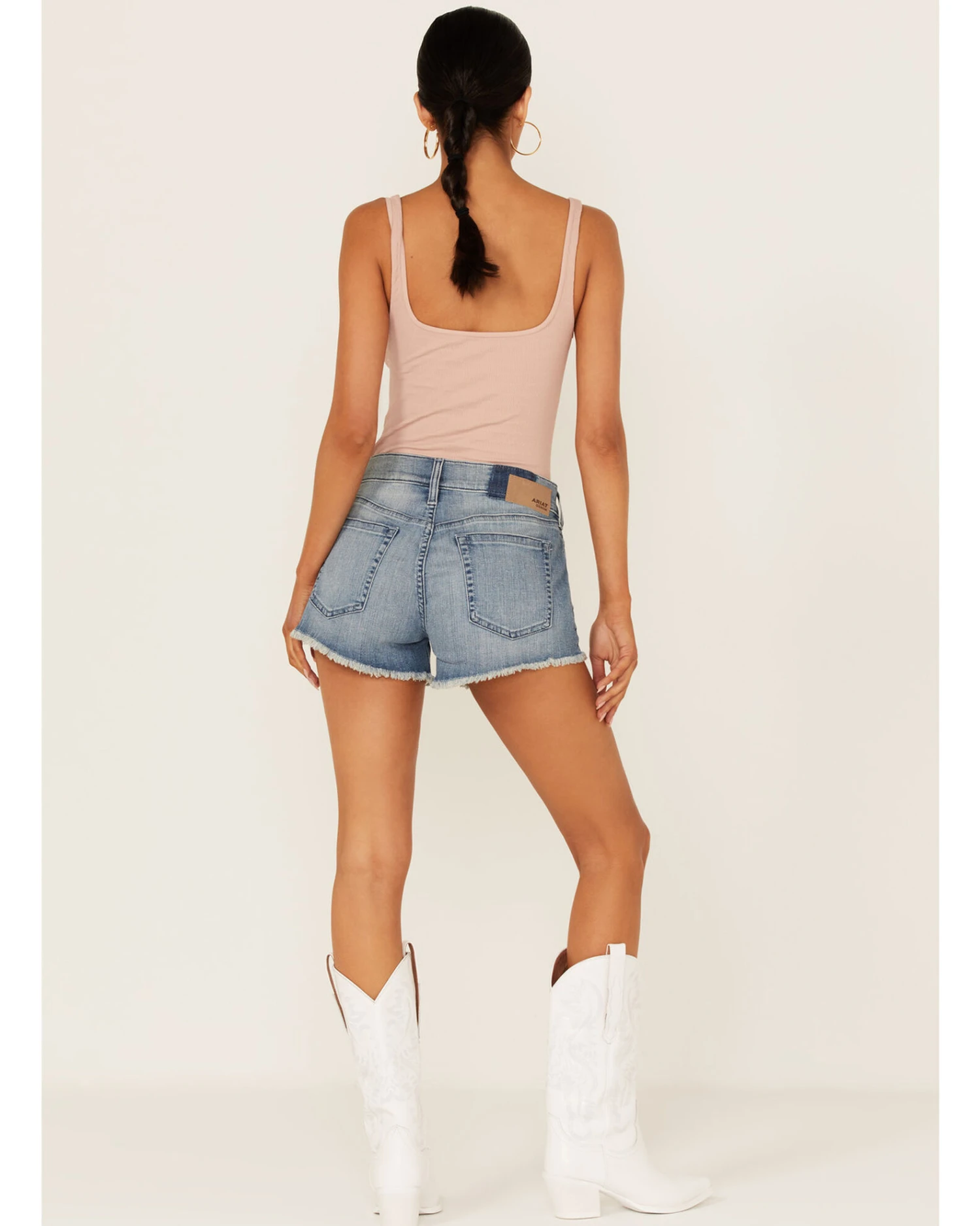 - Front embroidered boot stitch with frayed hem