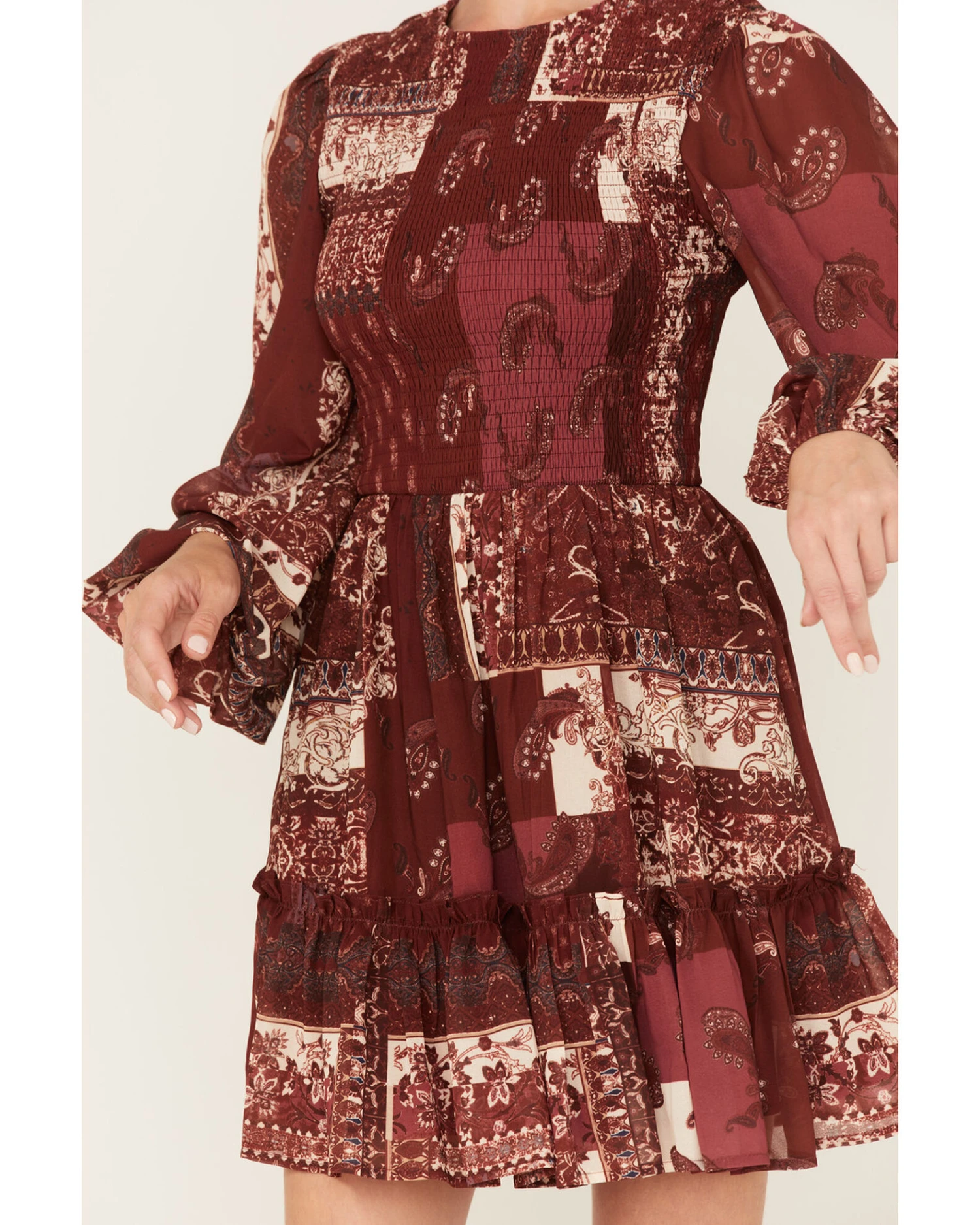 Flying Tomato Women’s Paisley Patchwork Smocked Dress