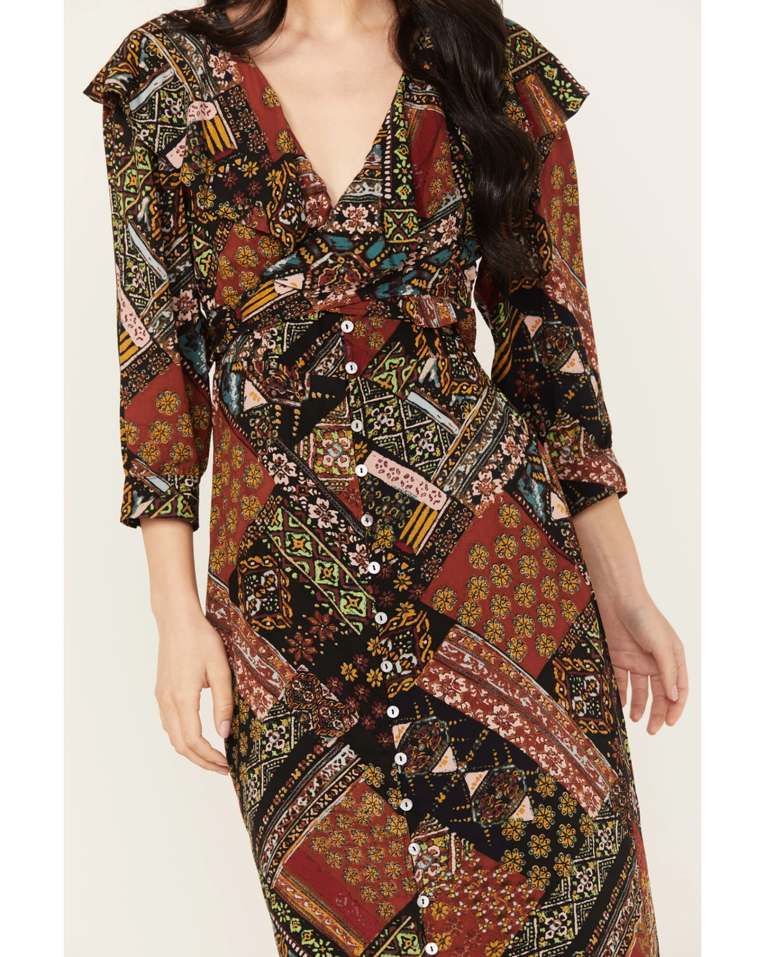 - Multicolored patchwork print
