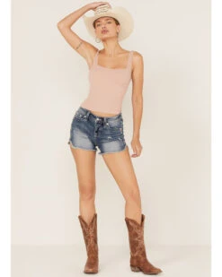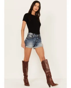 Be the first to review “Miss Me Women’s Medium Wash Mid Rise Floral Frayed Denim Shorts” Cancel reply
