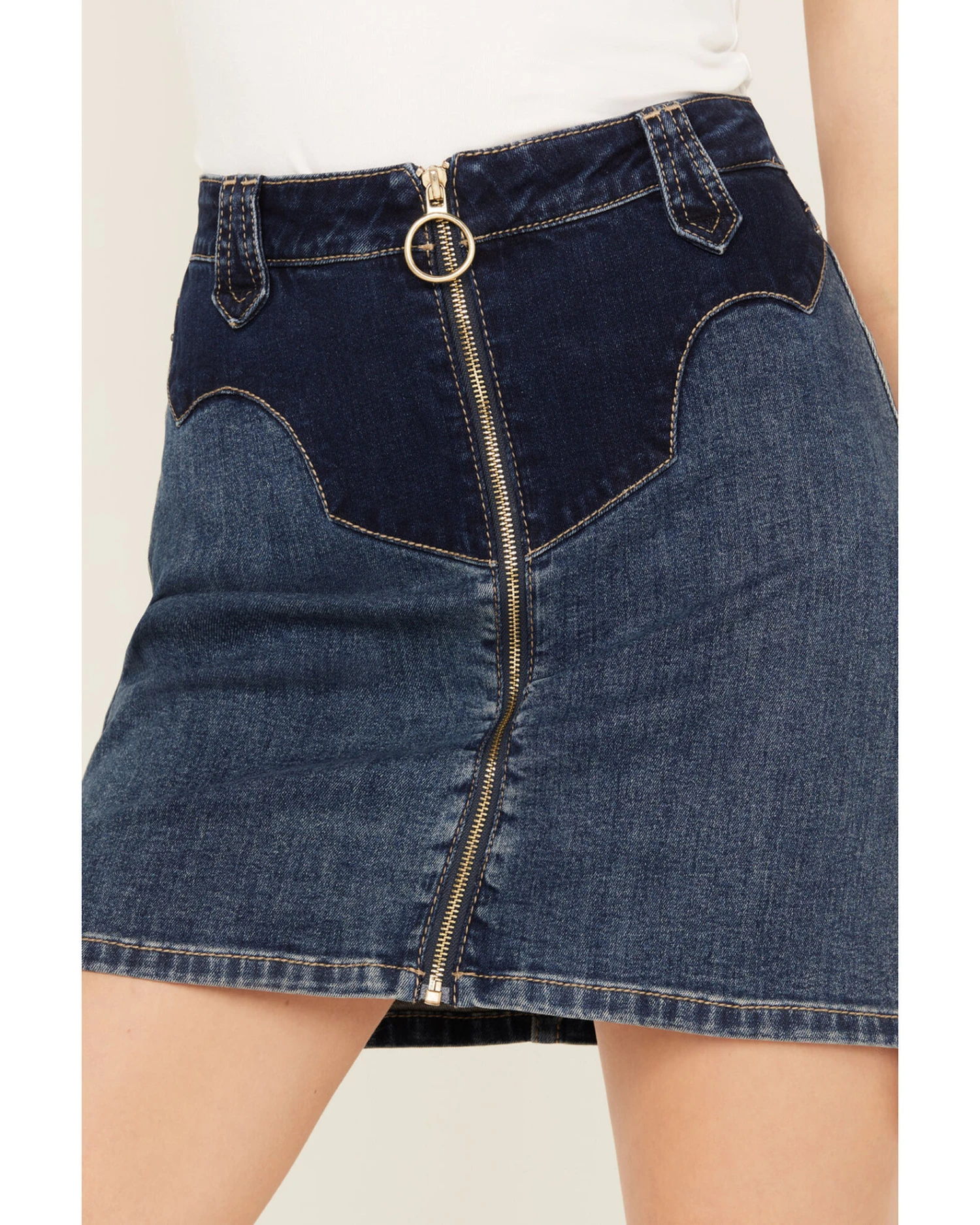 Rock & Roll Denim Women’s Medium Wash Two Tone Stretch Denim Skirt